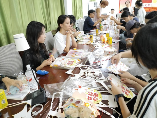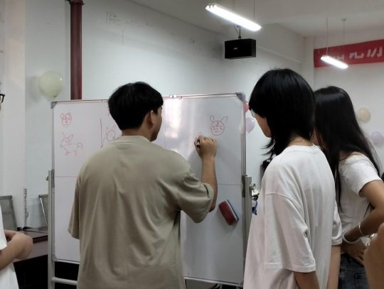绘画接龙游戏,队员共构思分工,交流碰撞思维、协作创作品,让同学感受传统与现代趣味的融合