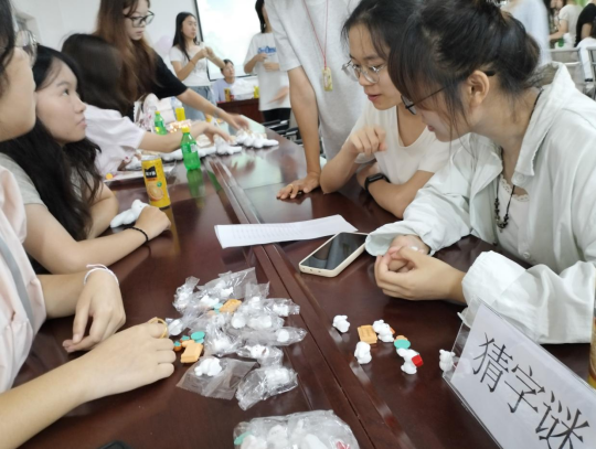 筷子夹“月亮”游戏,以筷子夹乒乓球结合传统“筷子”符号与中秋“月亮”意象,强化同学们动手能力,拉近合作与交流