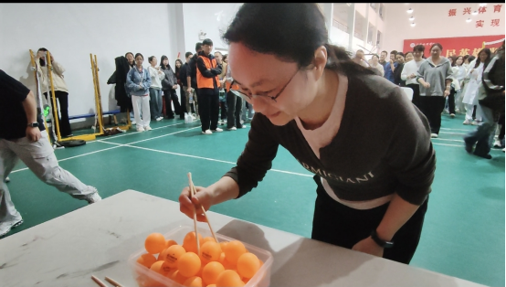 趣味项目和团体项目中,医学院学子的协作精神愈发凸显。两人三足比赛里,搭档们喊着统一的节奏,步调一致向终点迈进。