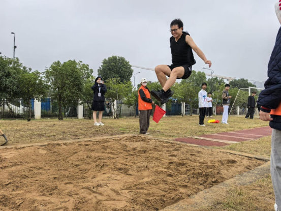 男女混合立定跳远项目,队员们相互加油鼓励,用标准的动作展现医学生昂扬的精神风貌。