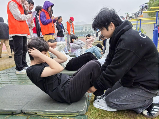在仰卧起坐中,女孩们节奏稳健,腹肌发力间突破自我;男生们每一次起身都彰显力量,用坚持书写青春风采。